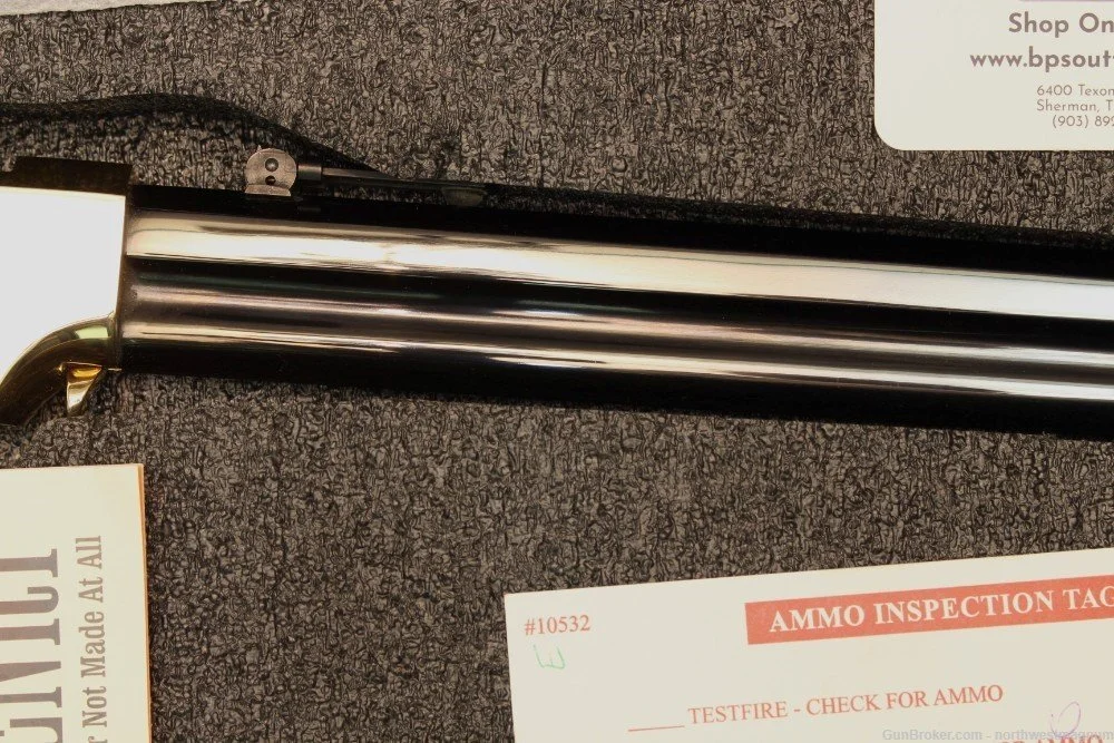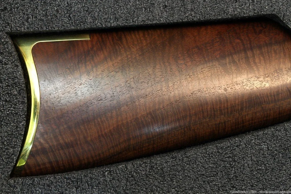 Very nice Henry Original that remains unfired in the box. This rifle is somewhat rare as there were not many produced in the 44-40 chambering. Notice the wood grain and how figured it is; we believe it to be AAA grade and somewhat better than the average rifle produced. The brass action is a highly polished finish that is absolutely gorgeous, but for some reason, the pictures show what looks to be a scratch even though it cannot be felt and only appears if held at the right angle. We believe it can be polished out without too much effort. Even though this rifle has never been fired and is still in the original box, it is being listed as "used" due to the fact it has been transferred to a private party.