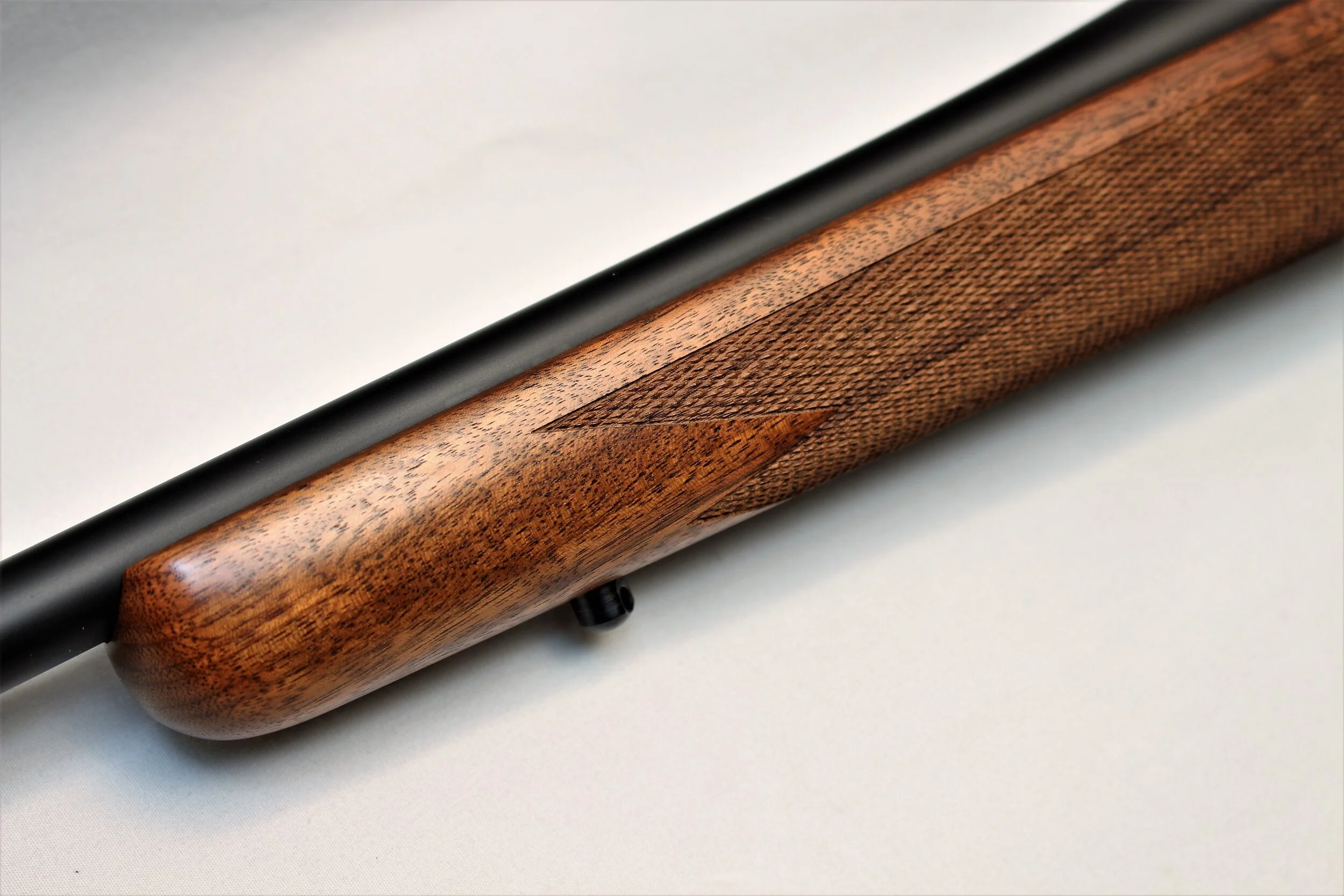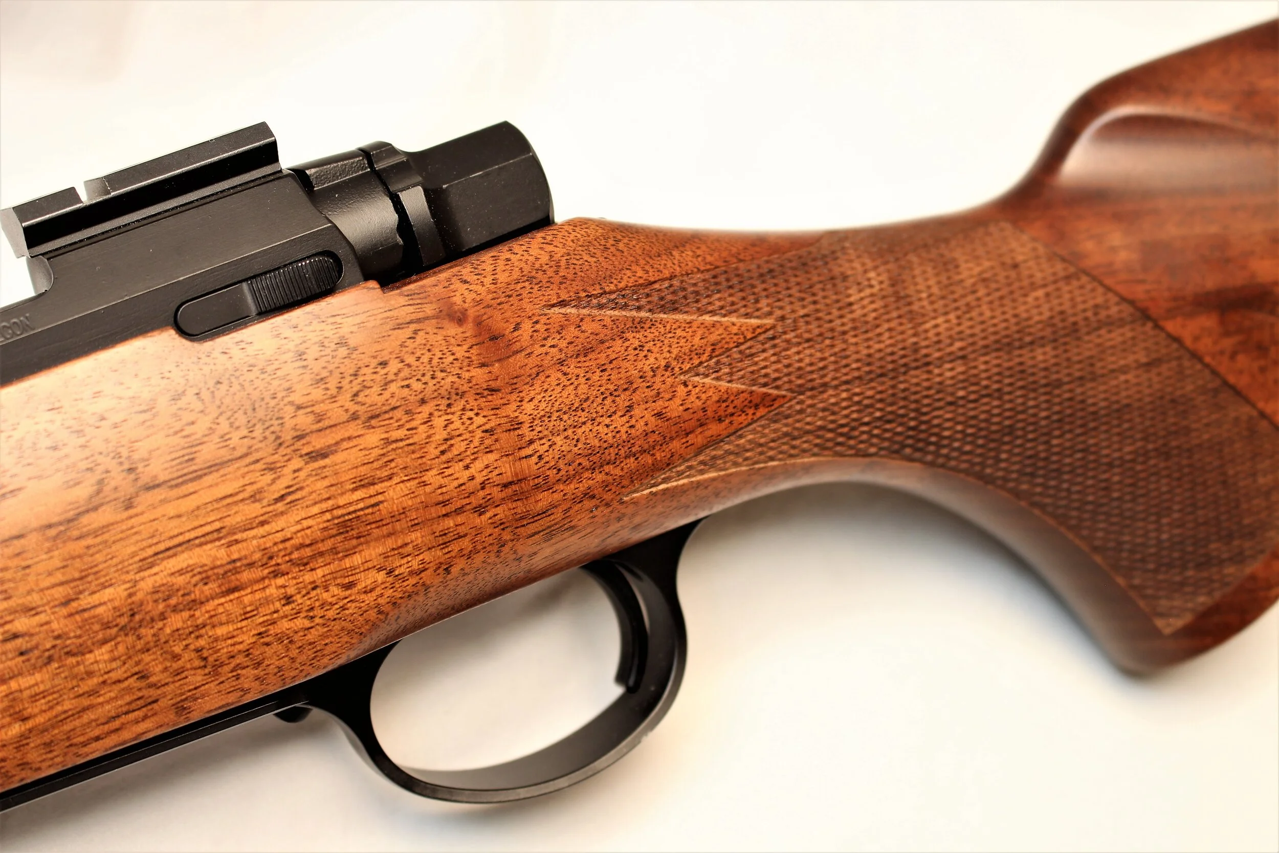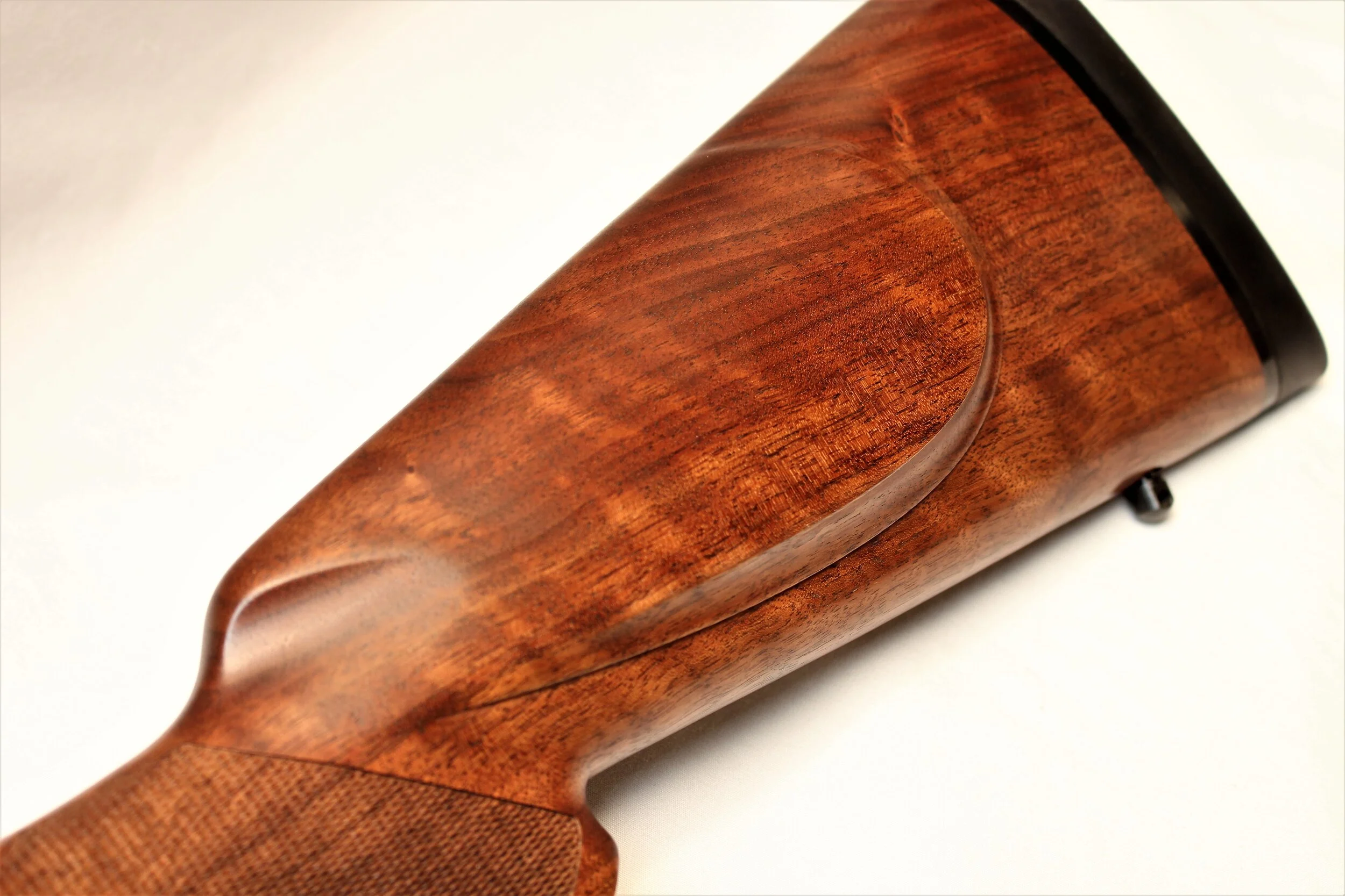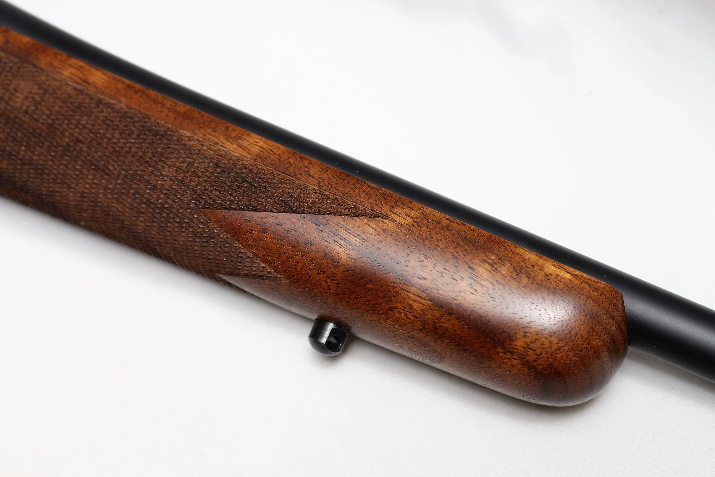 Excellent condition Nosler M48 rifle with exceptionally low round count if any. We put a bore scope in the chamber and throat and found almost no wear at all. The stock is also looks great and we were unable to find any nicks or dents. Speaking of the stock, it has very nice grain structure with the flow of the grain running down through the grip and strait in the action aria. There is also a good amount of fiddle back for figure giving the rifle a very rich look.